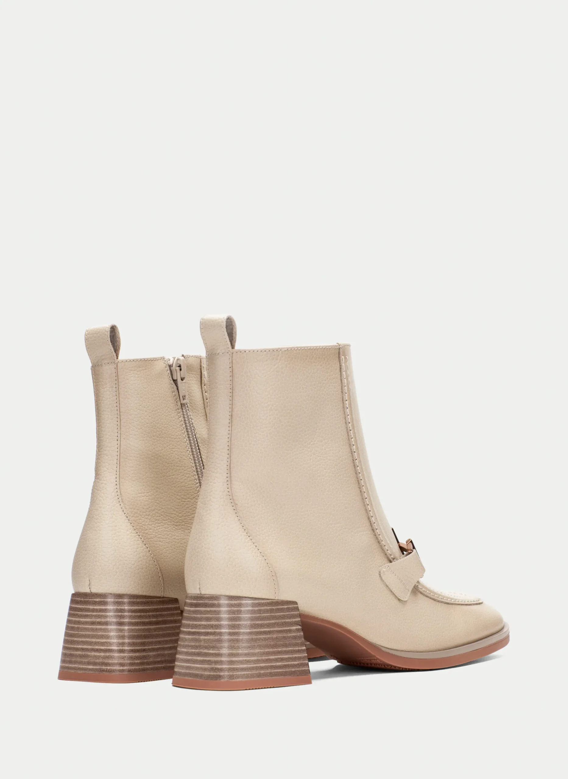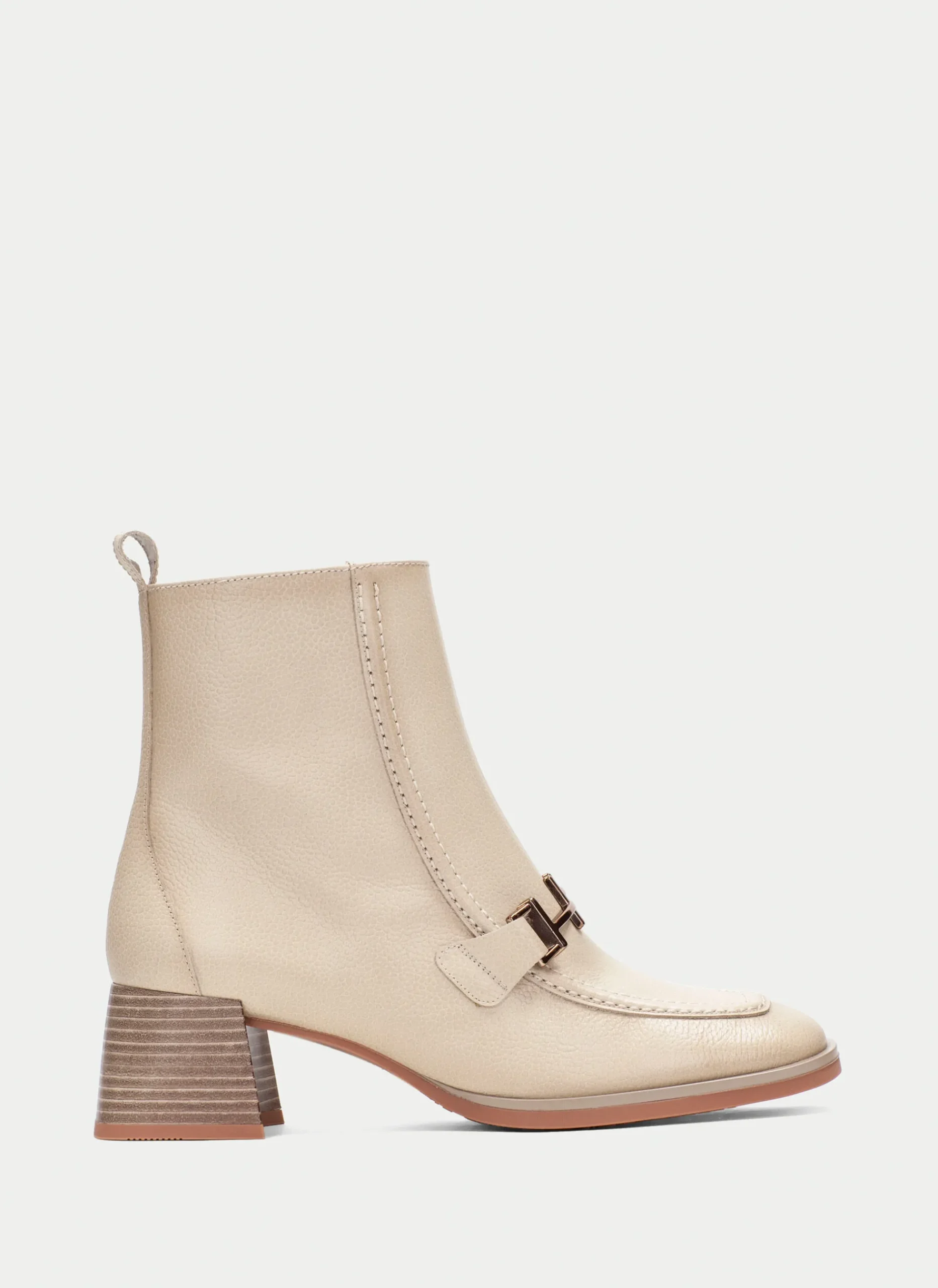 Botins estilo mocassim de pele com salto de 5 cm. Este modelo apresenta o pormenor da corrente com isótipo duplo “H” no peito do pé e um fecho de correr no interior. Incorpora a tecnologia TRIFLOW.