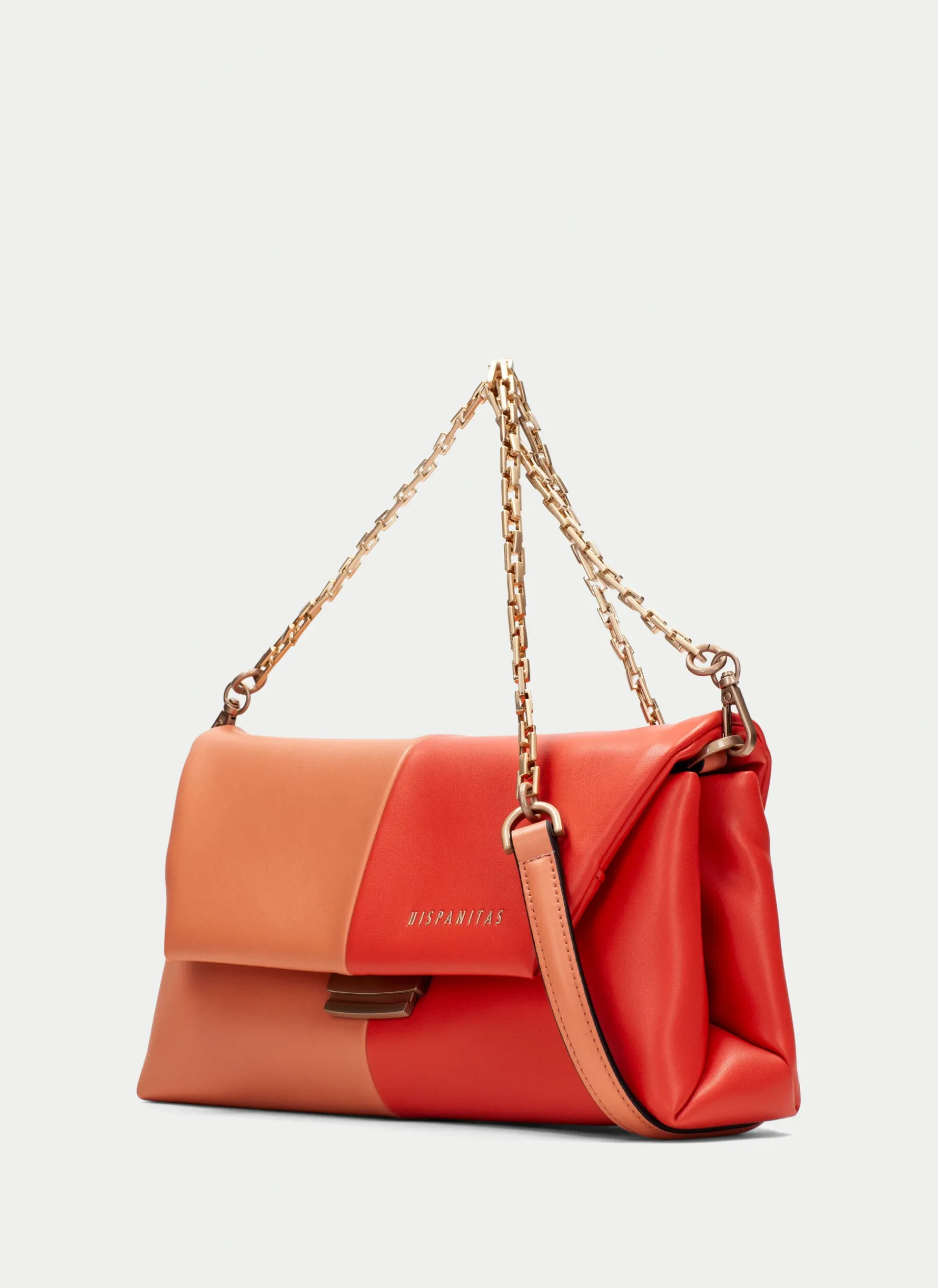 Bolsa de ombro em design bicolor Alça de corrente de metal dourado combinada com uma alça para um toque moderno e chique Fecho frontal com fecho de metal de estilo minimalista Grande espaço interior ideal para transportar os seus bens essenciais, com compartimentos adicionais para melhor organização Fabricado em couro técnico Detalhe do logotipo “Hispanitas” na frente como selo distintivo da marca.