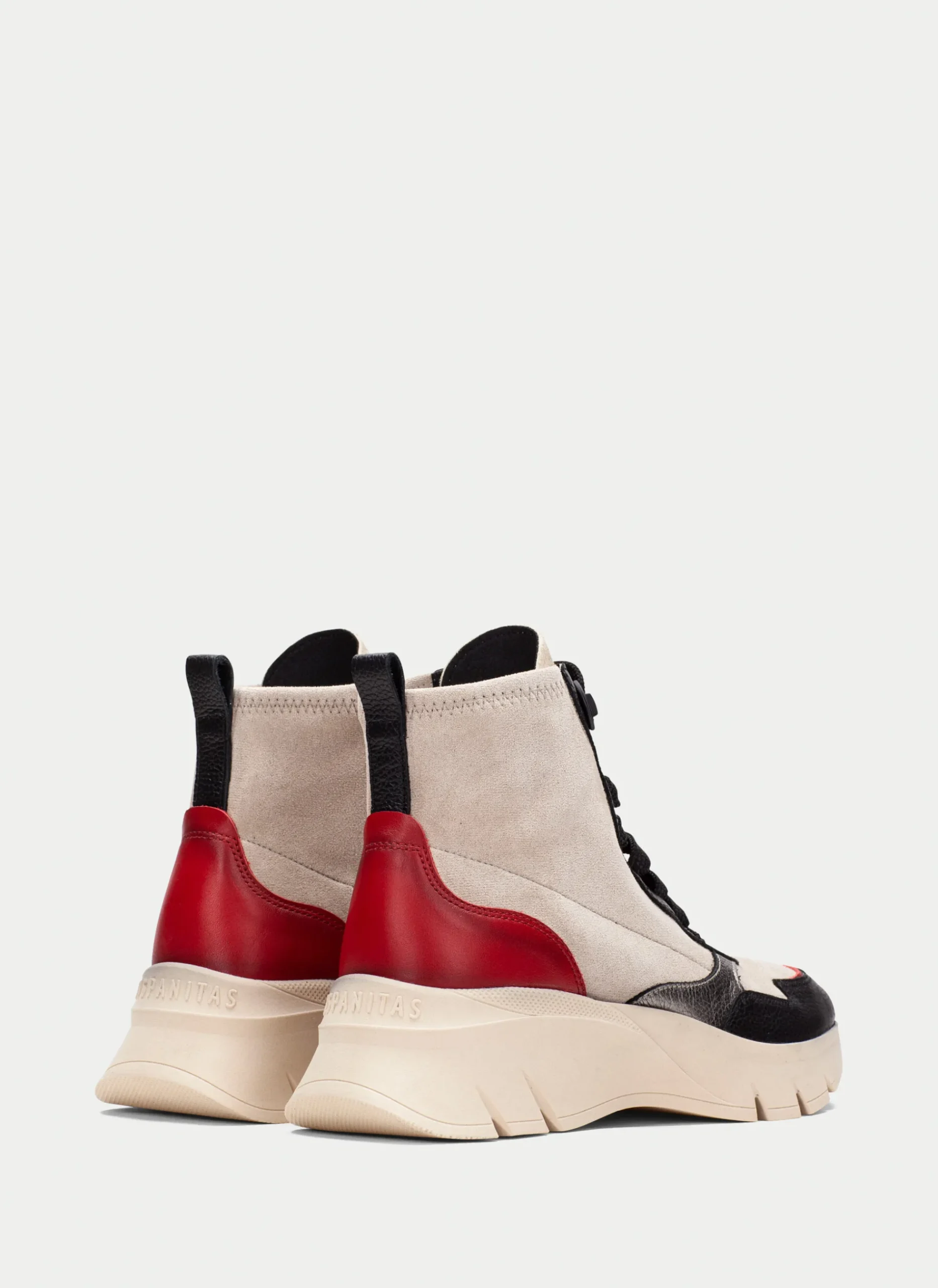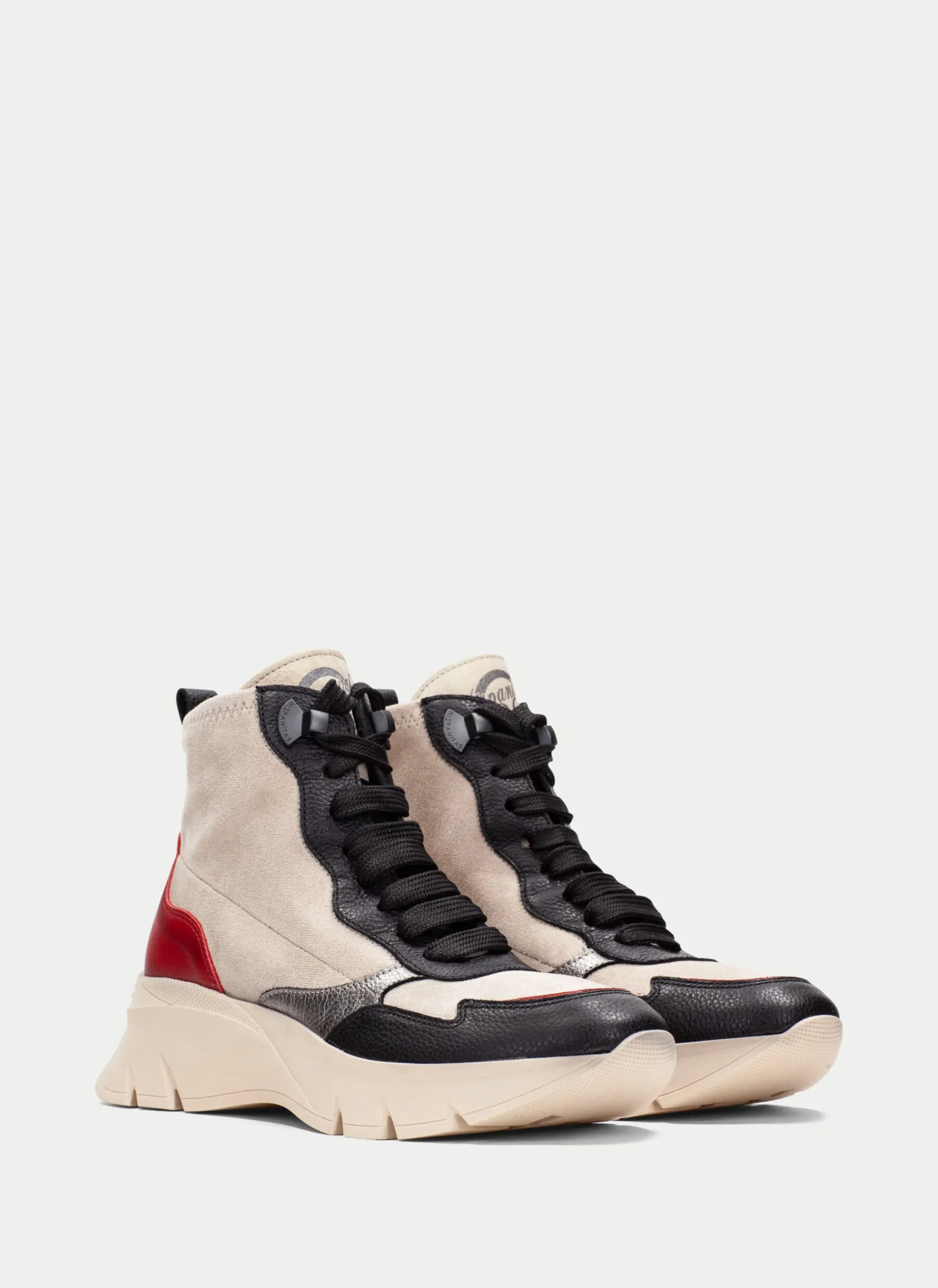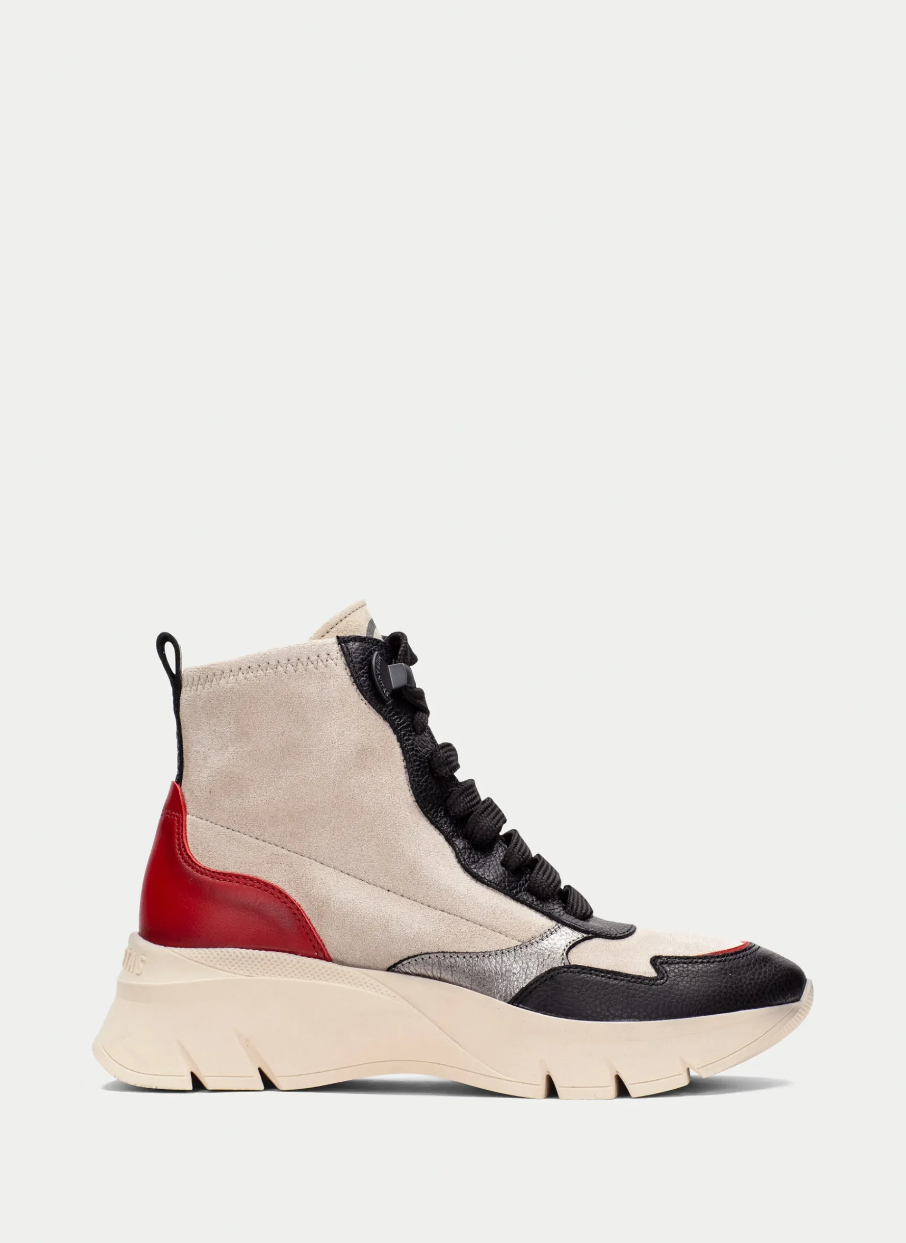 Botins desportivos com uma sola de volume de 5 cm e um design de cano elástico feito de uma combinação de materiais e fecho com atacadores. Estes sapatos contam com a tecnologia Triflow, que amortece cada passo, proporcionando flexibilidade e conforto ao caminhar, e contam ainda com palmilhas removíveis.