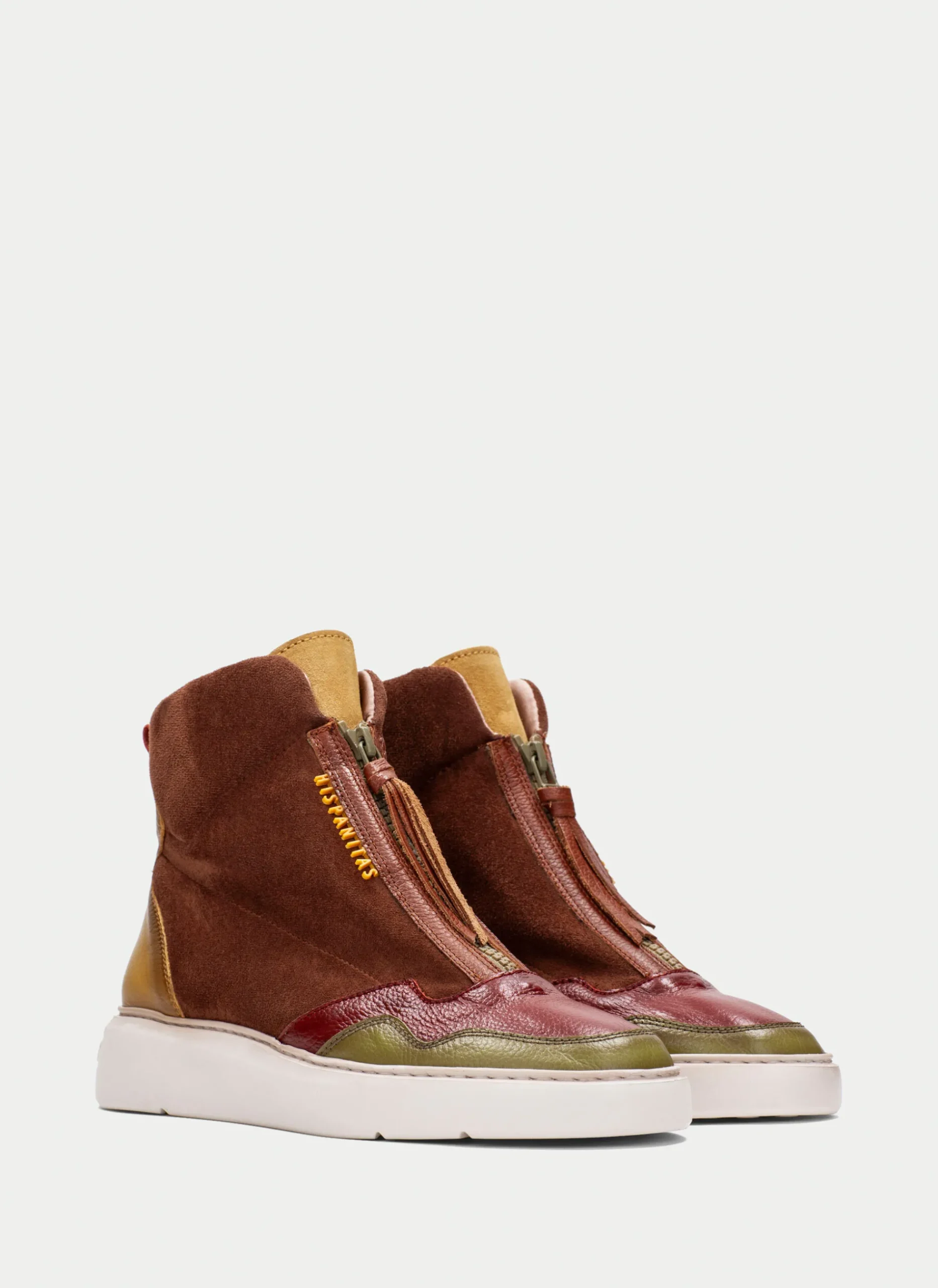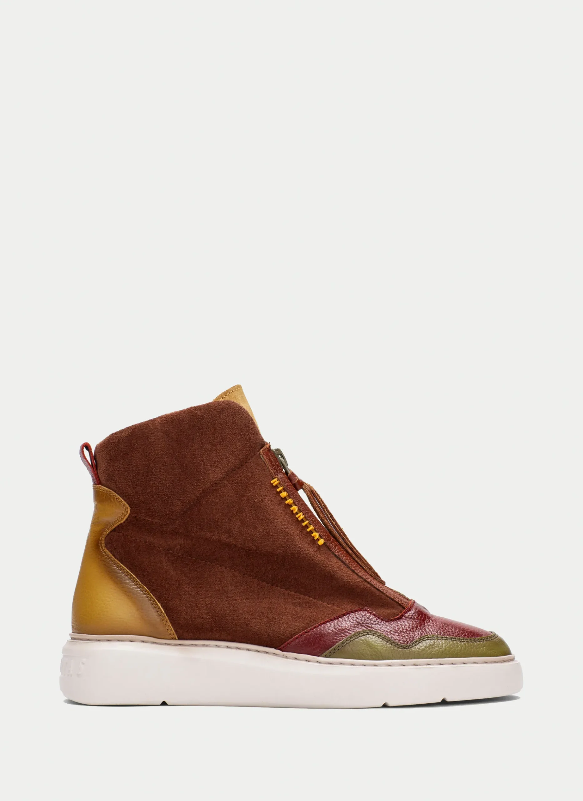 Ténis bota com sola volume em bloco. Este modelo distingue-se pela combinação original de materiais e pelo fecho de correr central. Este modelo incorpora a tecnologia TRIFLOW e possui também uma palmilha amovível.