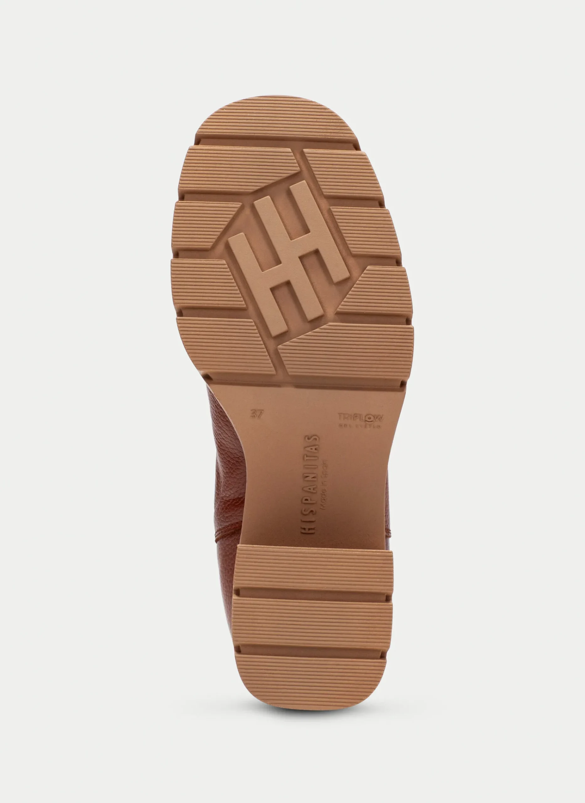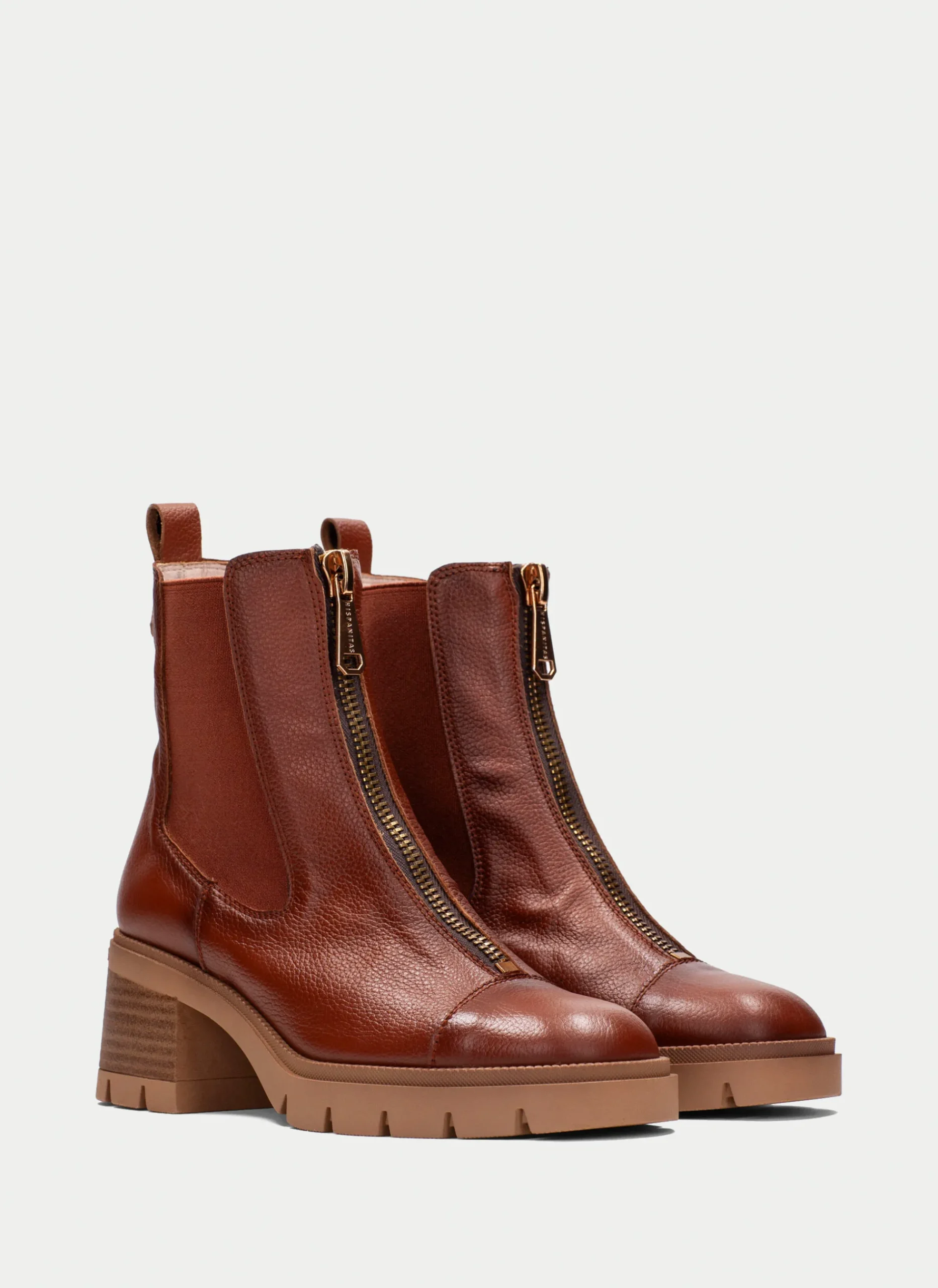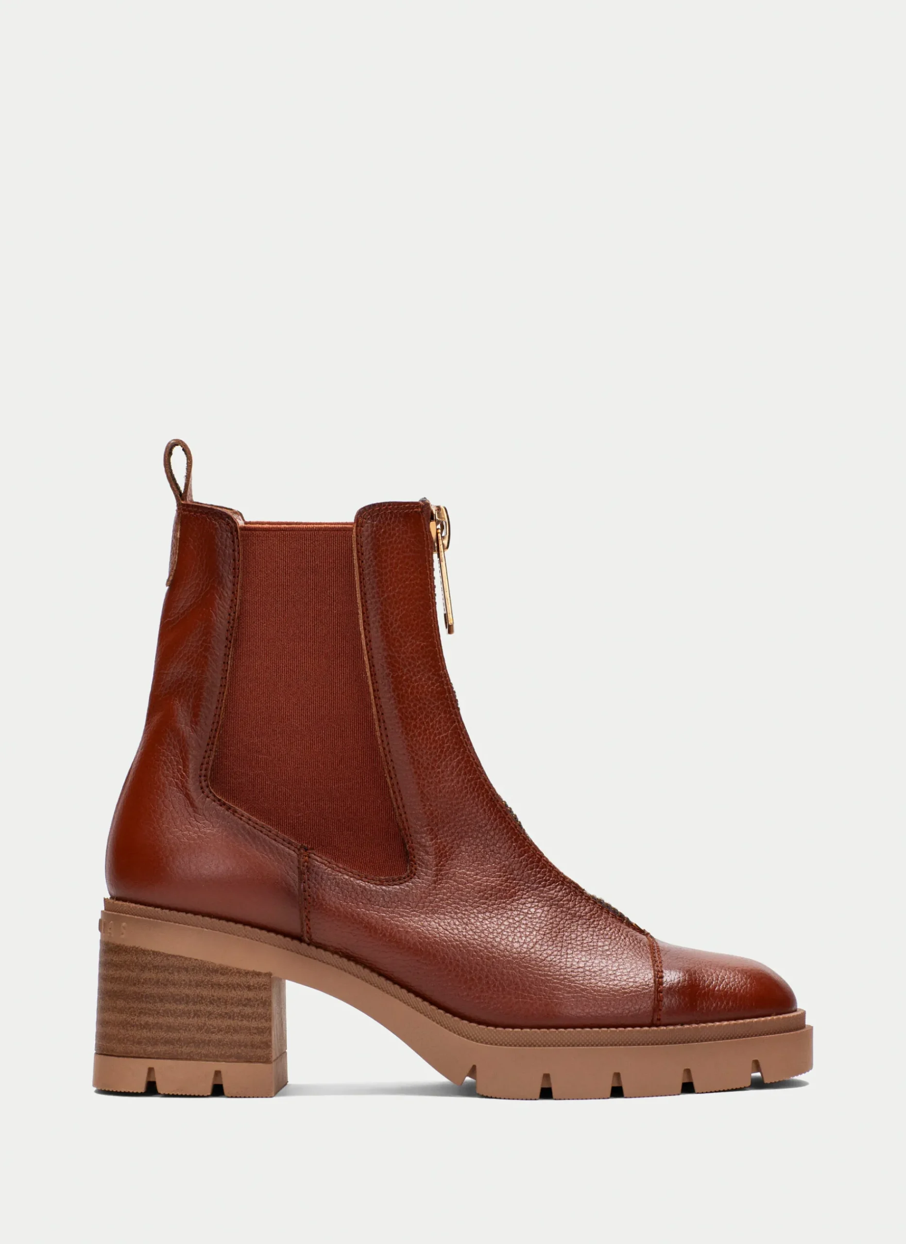 Botins com sola track e salto bloco de 5 cm. Detalhe de laterais elásticas estilo chelsea. Estes sapatos contam com a tecnologia TRIFLOW, que amortece cada passo, proporcionando flexibilidade e conforto no caminhar.