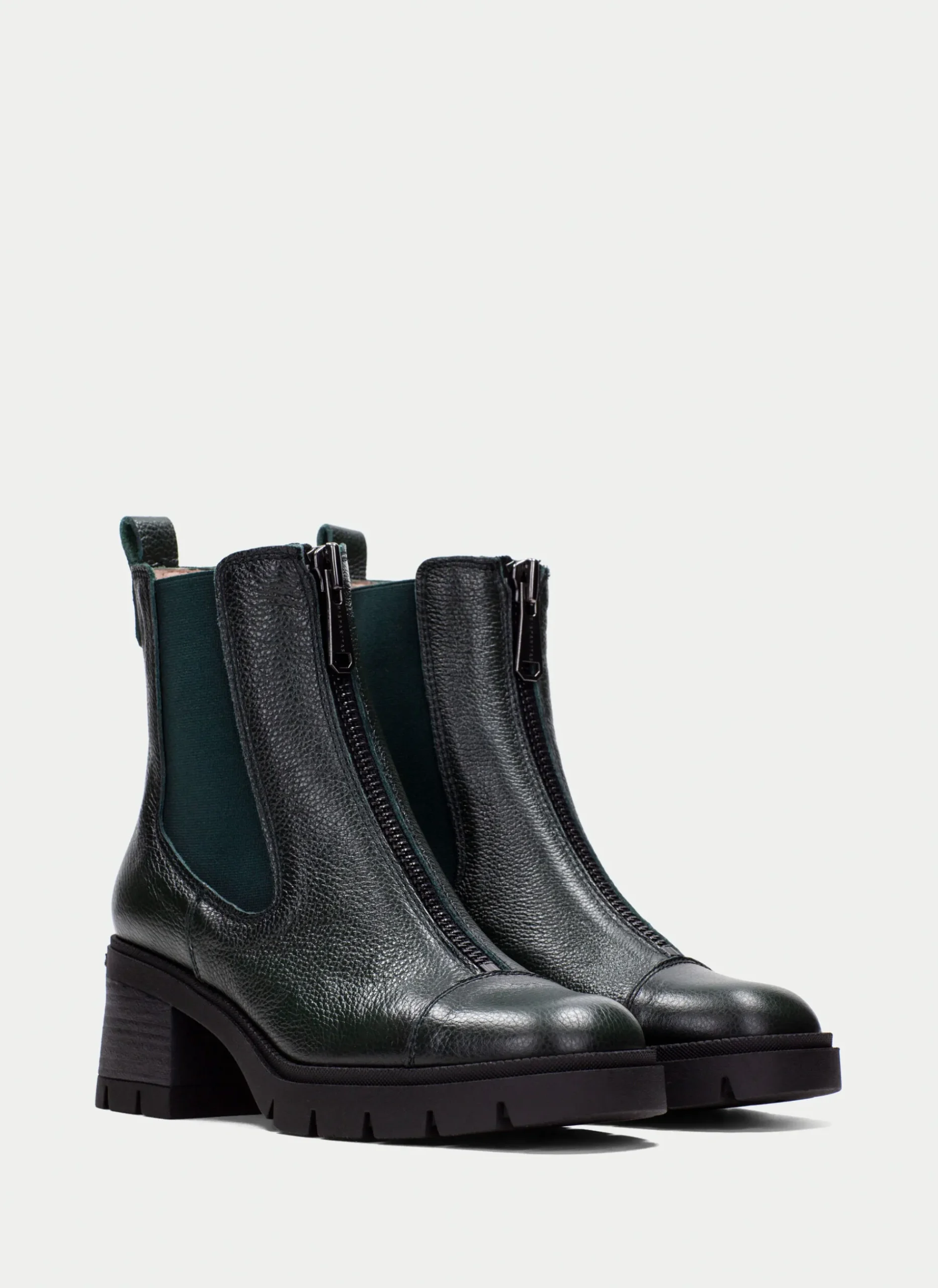 Botins com sola track e salto bloco de 5 cm. Detalhe de laterais elásticas estilo chelsea. Estes sapatos contam com a tecnologia TRIFLOW, que amortece cada passo, proporcionando flexibilidade e conforto no caminhar.