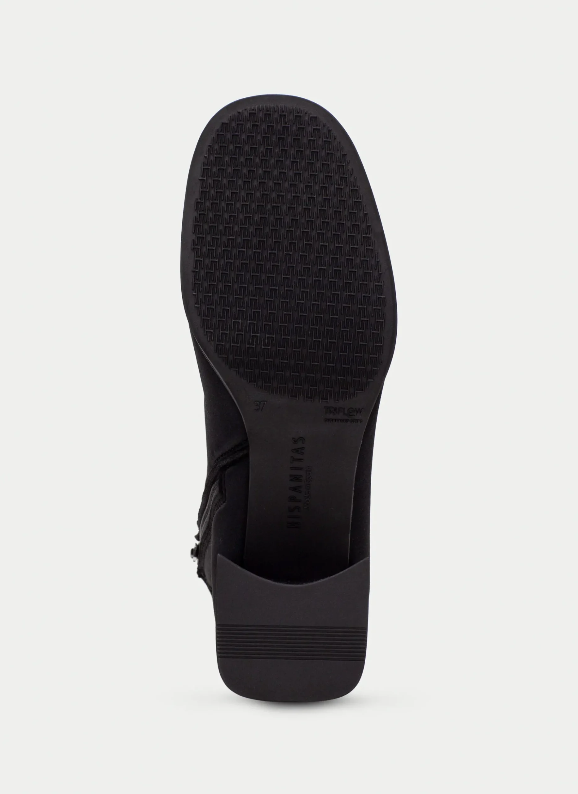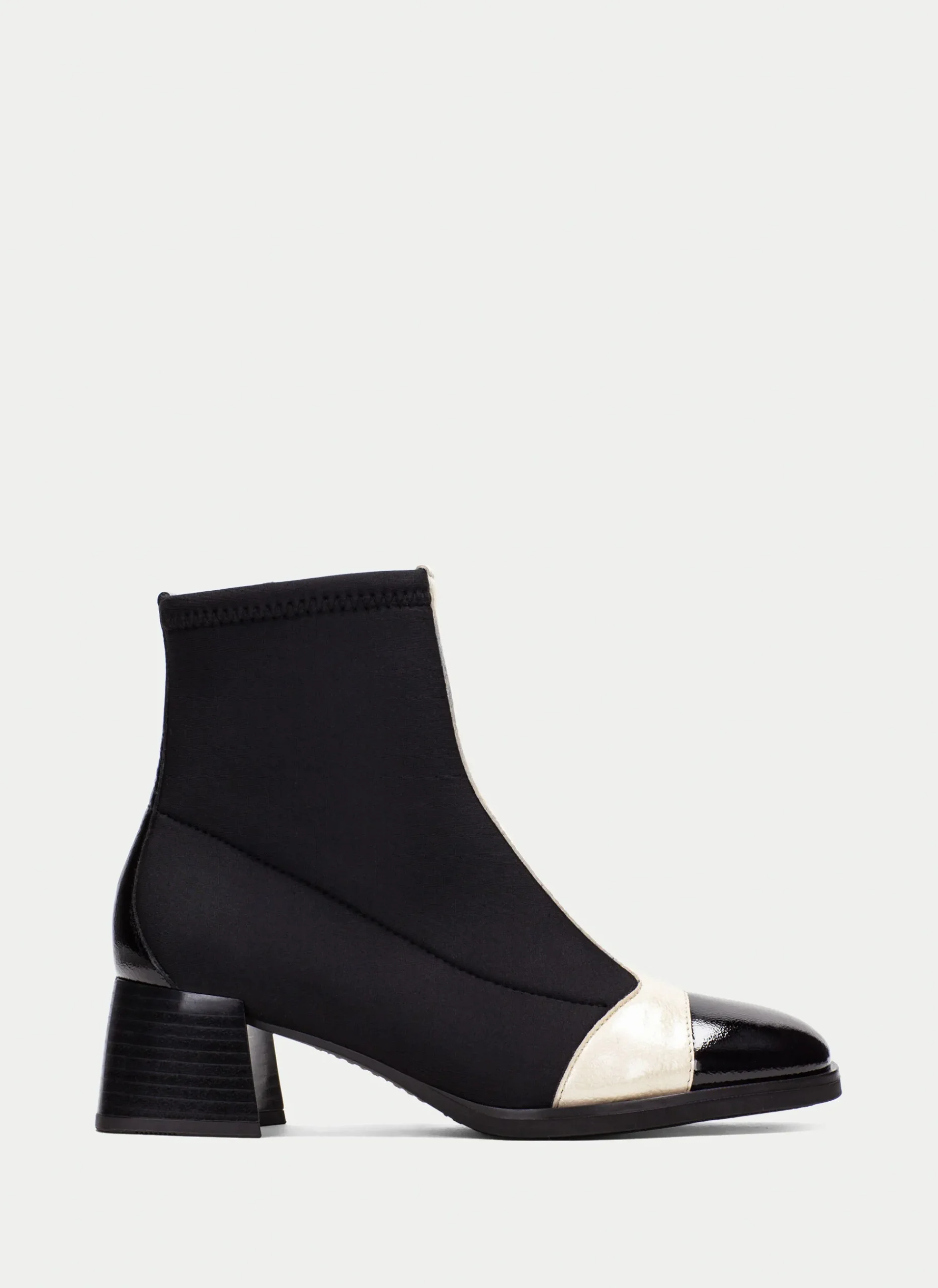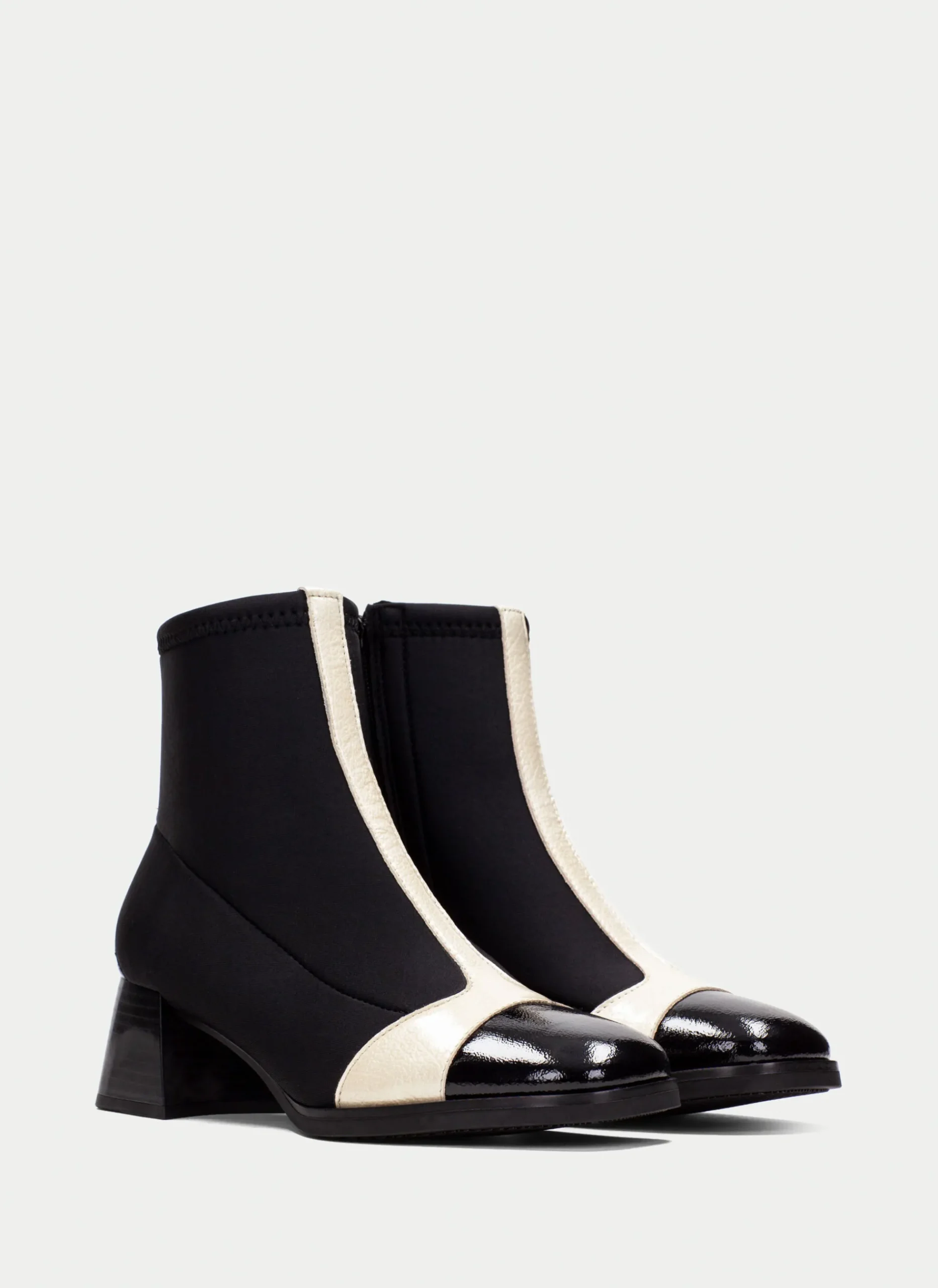 Botins com biqueira redonda e um design stretch que permite um ajuste perfeito ao pé. Salto de 5 cm de altura e fecho de correr no peito do pé com o nome da marca. Este sapato incorpora a tecnologia TRIFLOW e possui também uma palmilha amovível.