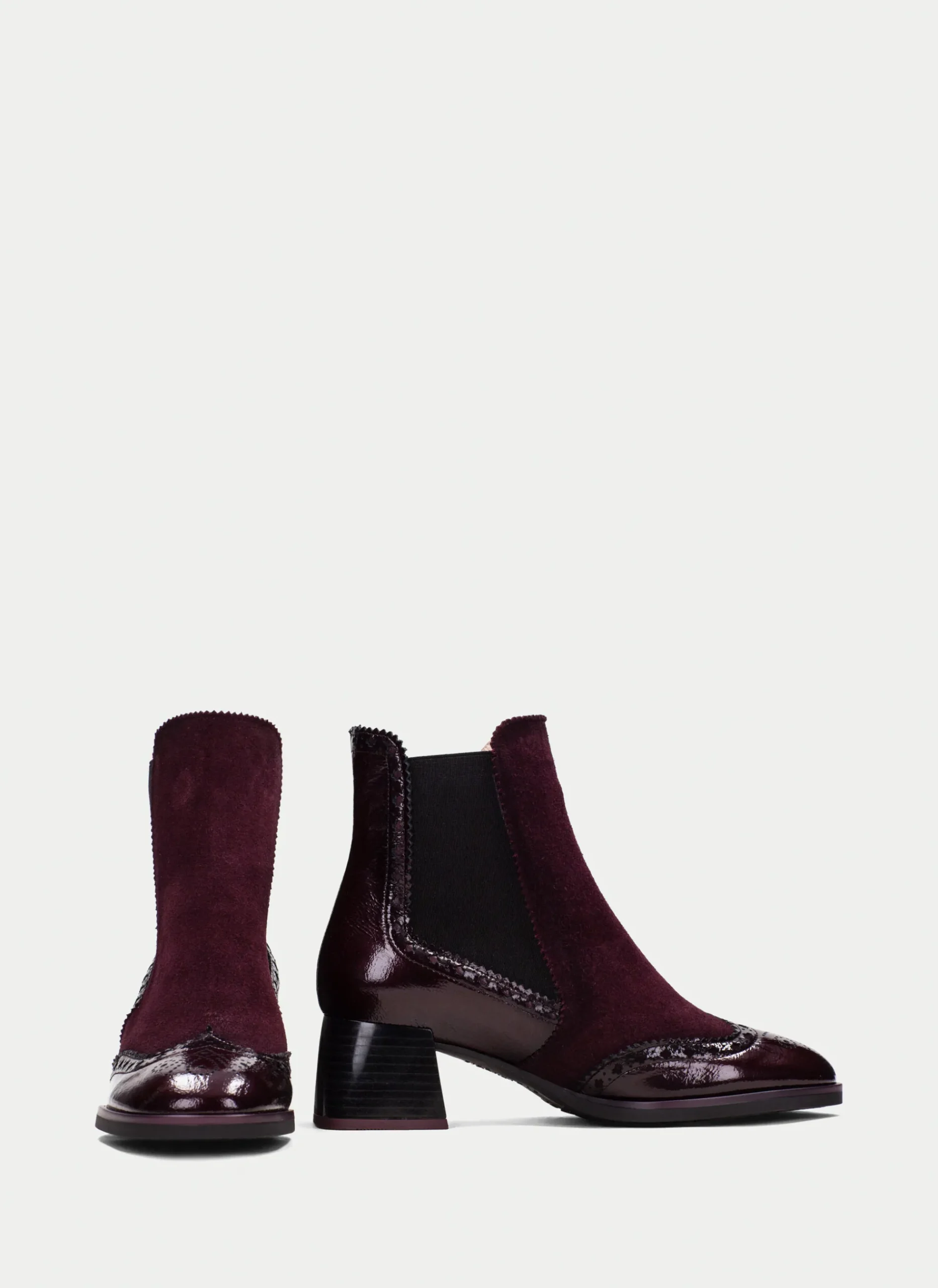 Botins com salto em bloco de 5 cm e biqueira redonda. Fecho elástico nos lados e pormenores estampados na biqueira. Estes sapato contam com a tecnologia Triflow e possuem também palmilhas removíveis.