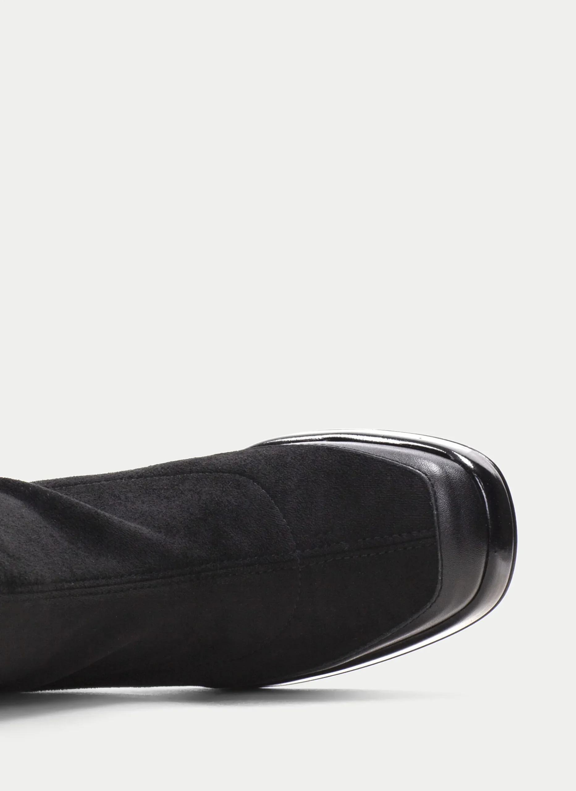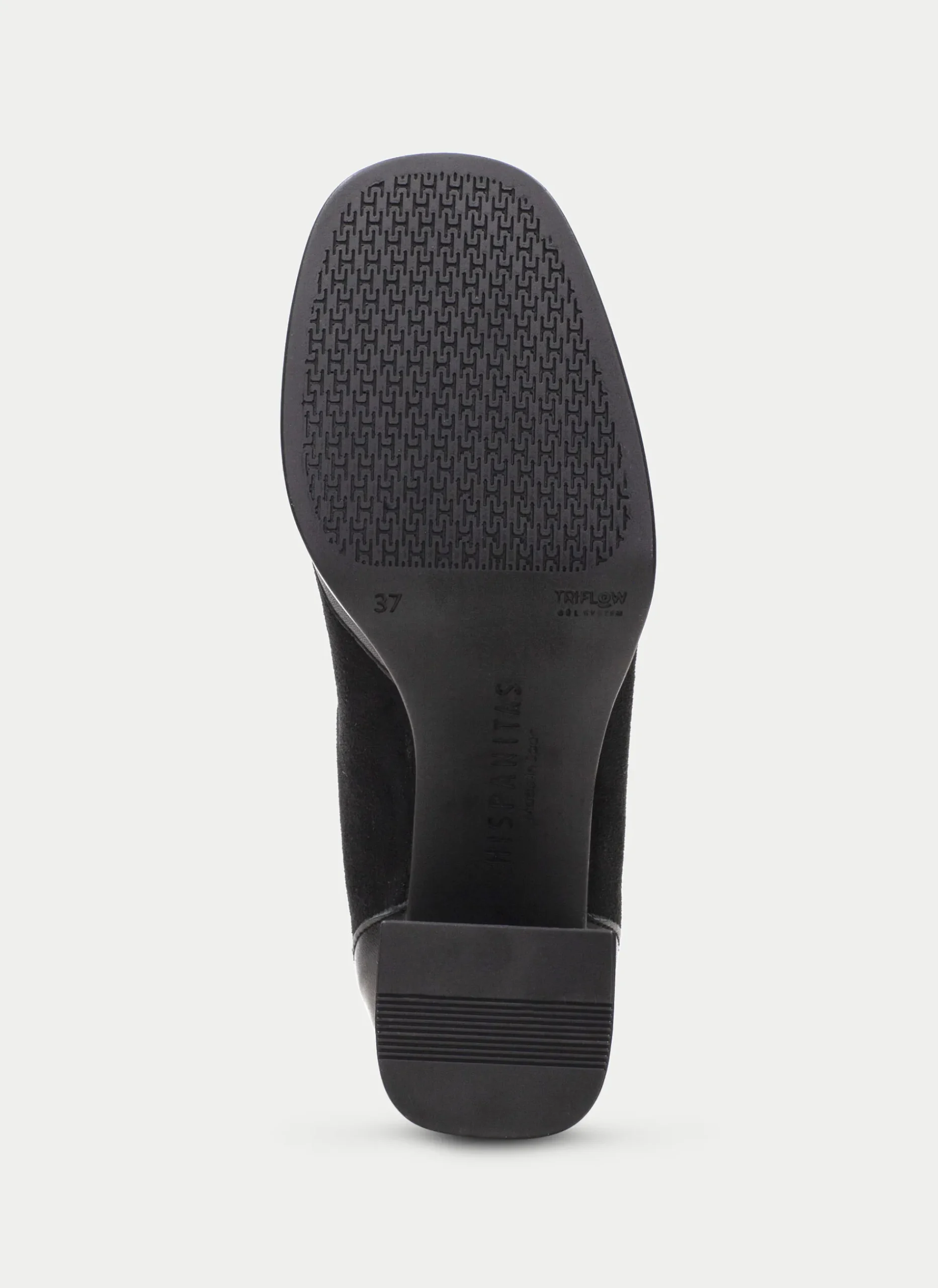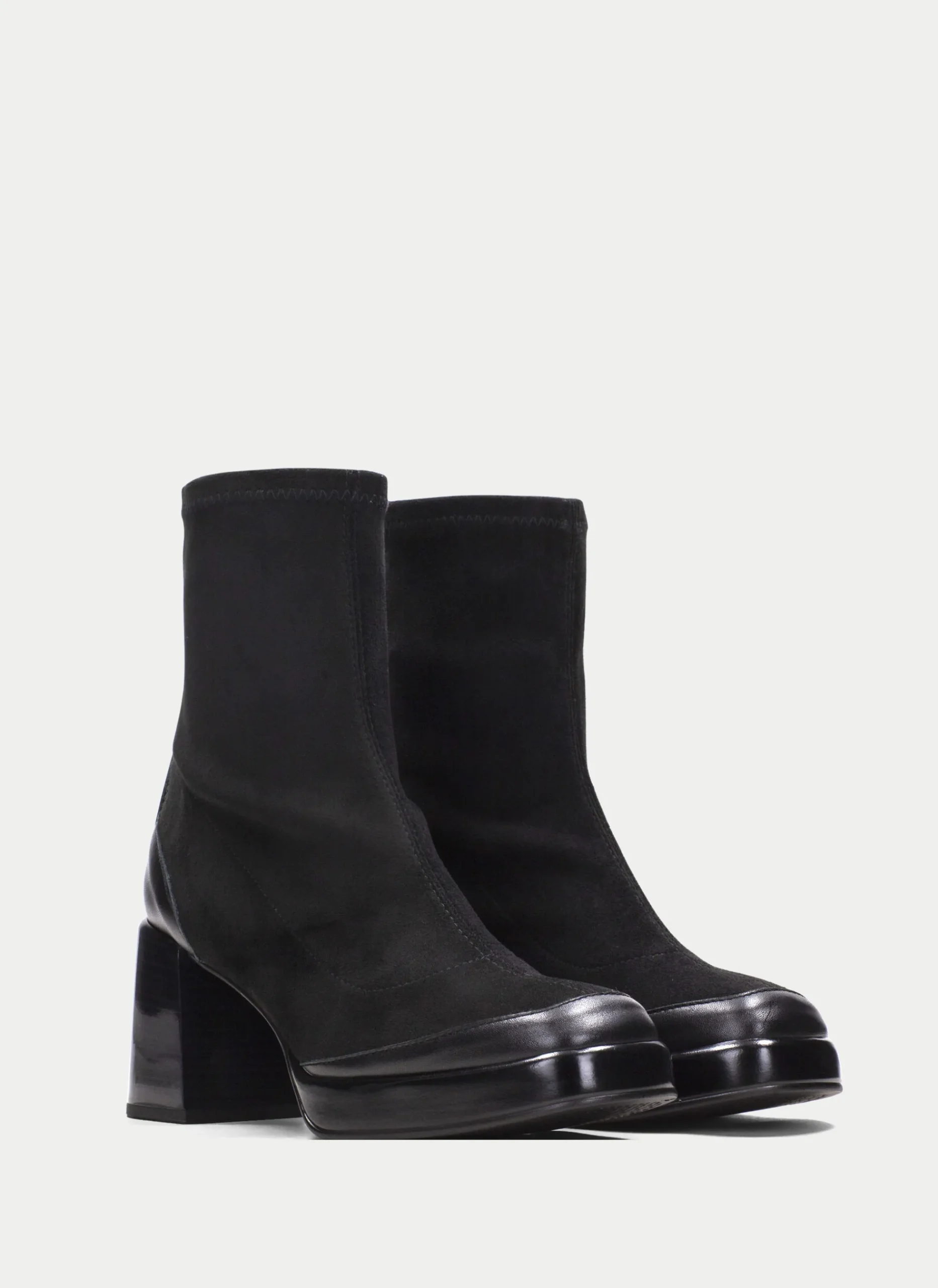 Botins com salto em bloco de 7 cm e biqueira redonda. Fecho de correr no peito do pé com o nome da marca. Este sapato incorpora a tecnologia TRIFLOW, que amortece cada passo, proporcionando flexibilidade e conforto na passada, graças ao seu amortecimento triplo.
