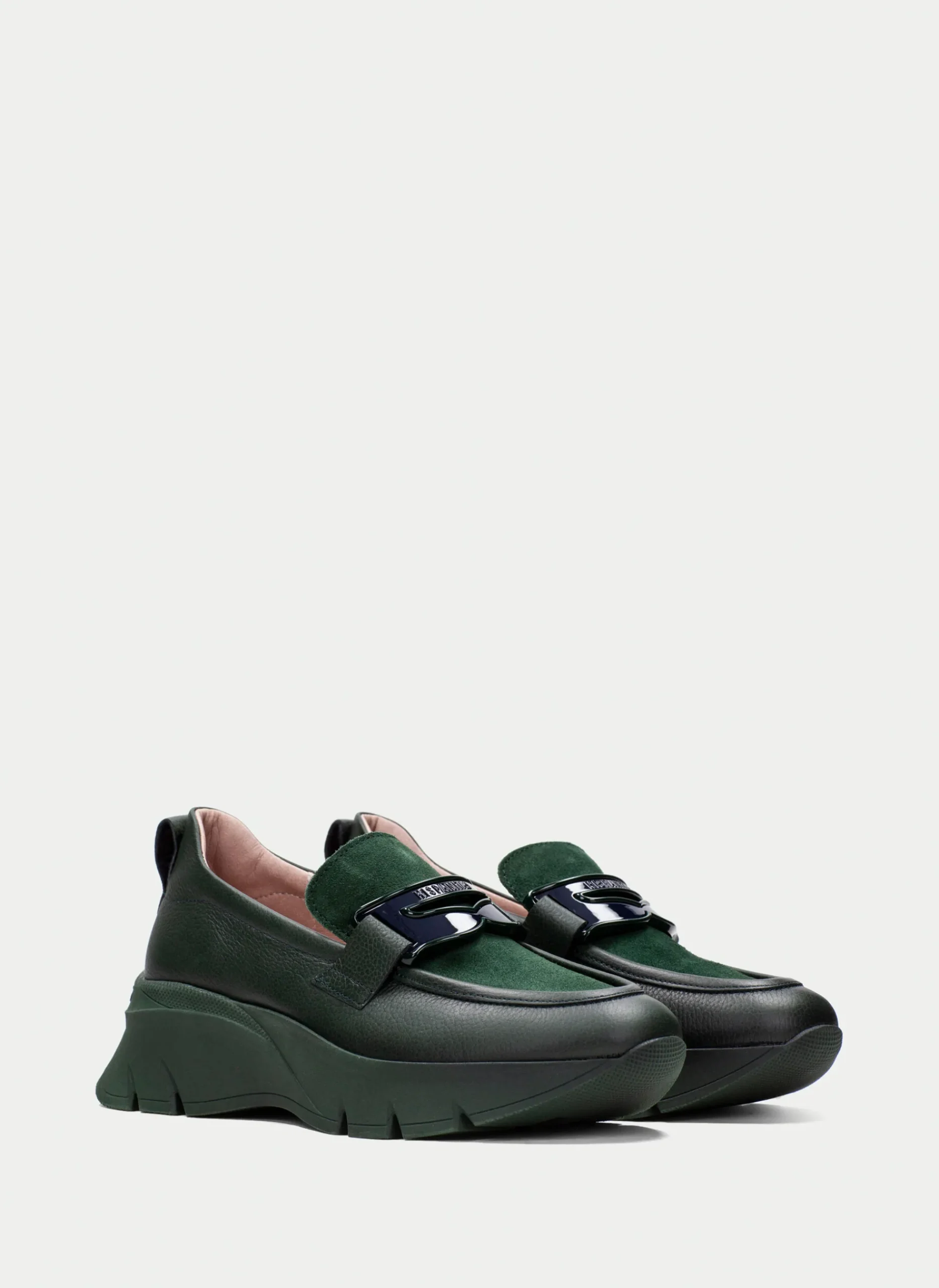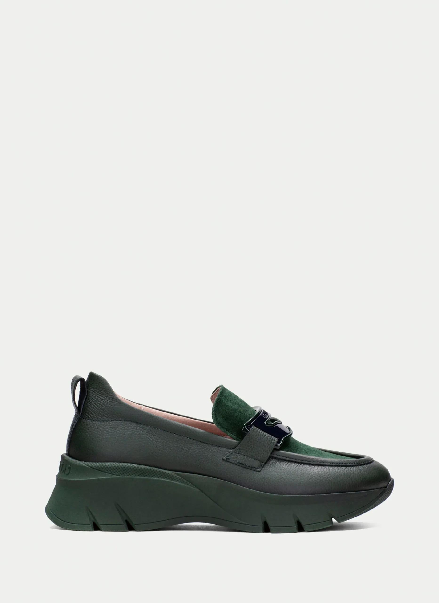 Mocassim esportivo confeccionado em couro com sola volumosa de 5 cm. Este modelo apresenta uma decoração de máscara no peito do pé, proporcionando um toque único e elegante. Além disso, o sapato contém a tecnologia Triflow, amortecendo cada passo e proporcionando flexibilidade e conforto graças ao seu triplo acolchoamento.