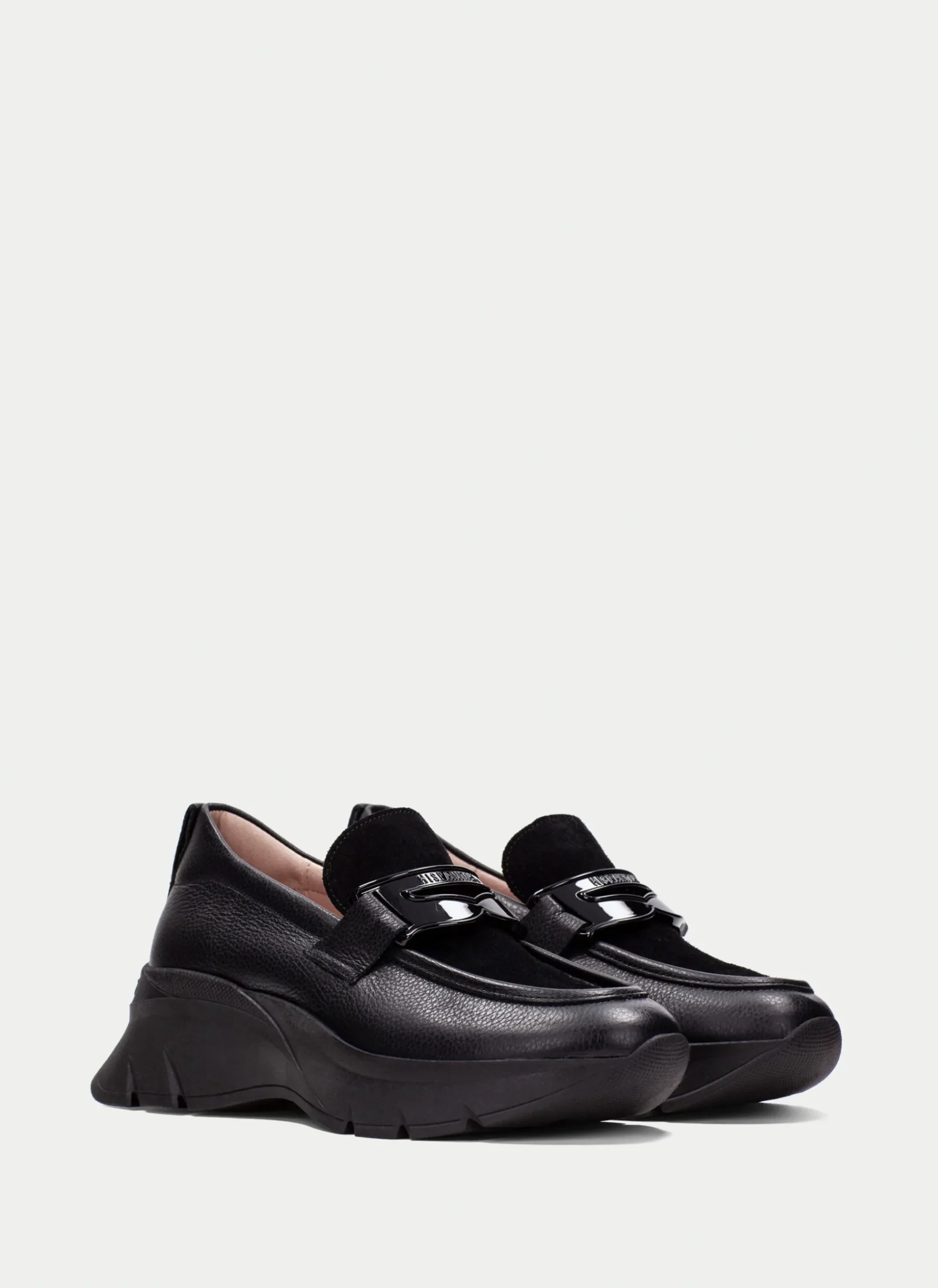 Mocassim esportivo confeccionado em couro com sola volumosa de 5 cm. Este modelo apresenta uma decoração de máscara no peito do pé, proporcionando um toque único e elegante. Além disso, o sapato contém a tecnologia Triflow, amortecendo cada passo e proporcionando flexibilidade e conforto graças ao seu triplo acolchoamento.