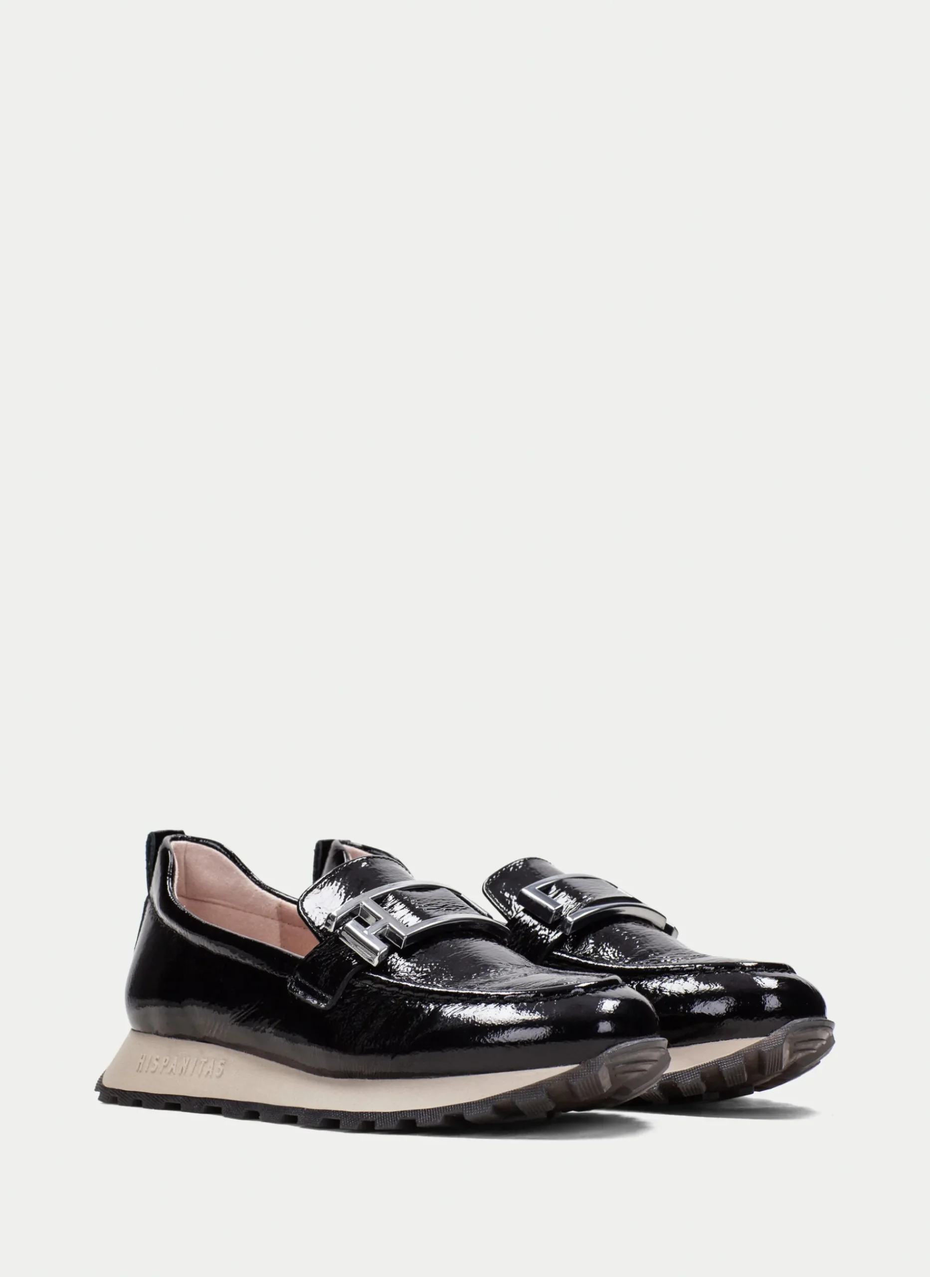 Mocassins de estilo sport com sola volumosa e adorno de fivela maxi com o logótipo da Hispanitas no peito do pé. Este modelo incorpora a tecnologia TRIFLOW e possui também uma palmilha amovível.
