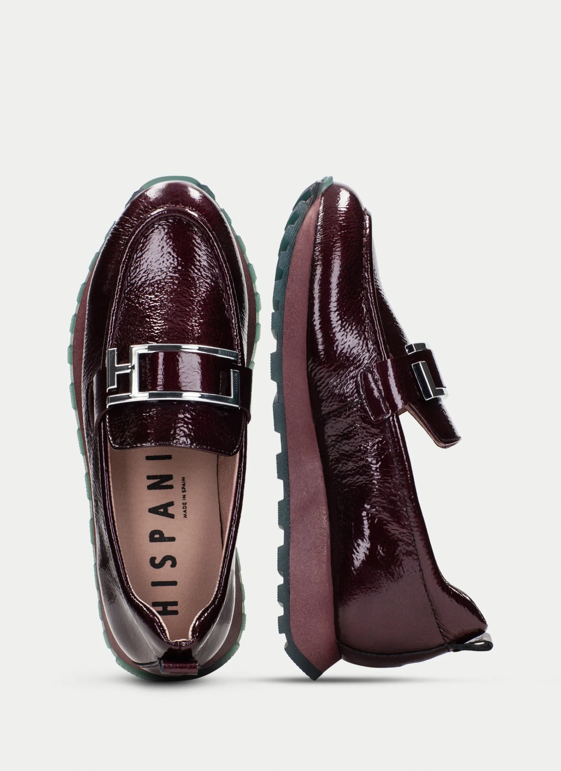 Mocassins de estilo sport com sola volumosa e adorno de fivela maxi com o logótipo da Hispanitas no peito do pé. Este modelo incorpora a tecnologia TRIFLOW e possui também uma palmilha amovível.