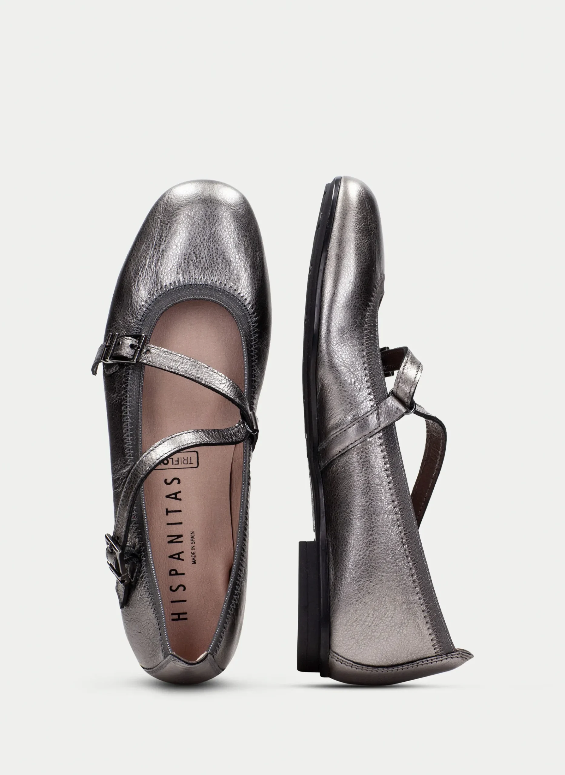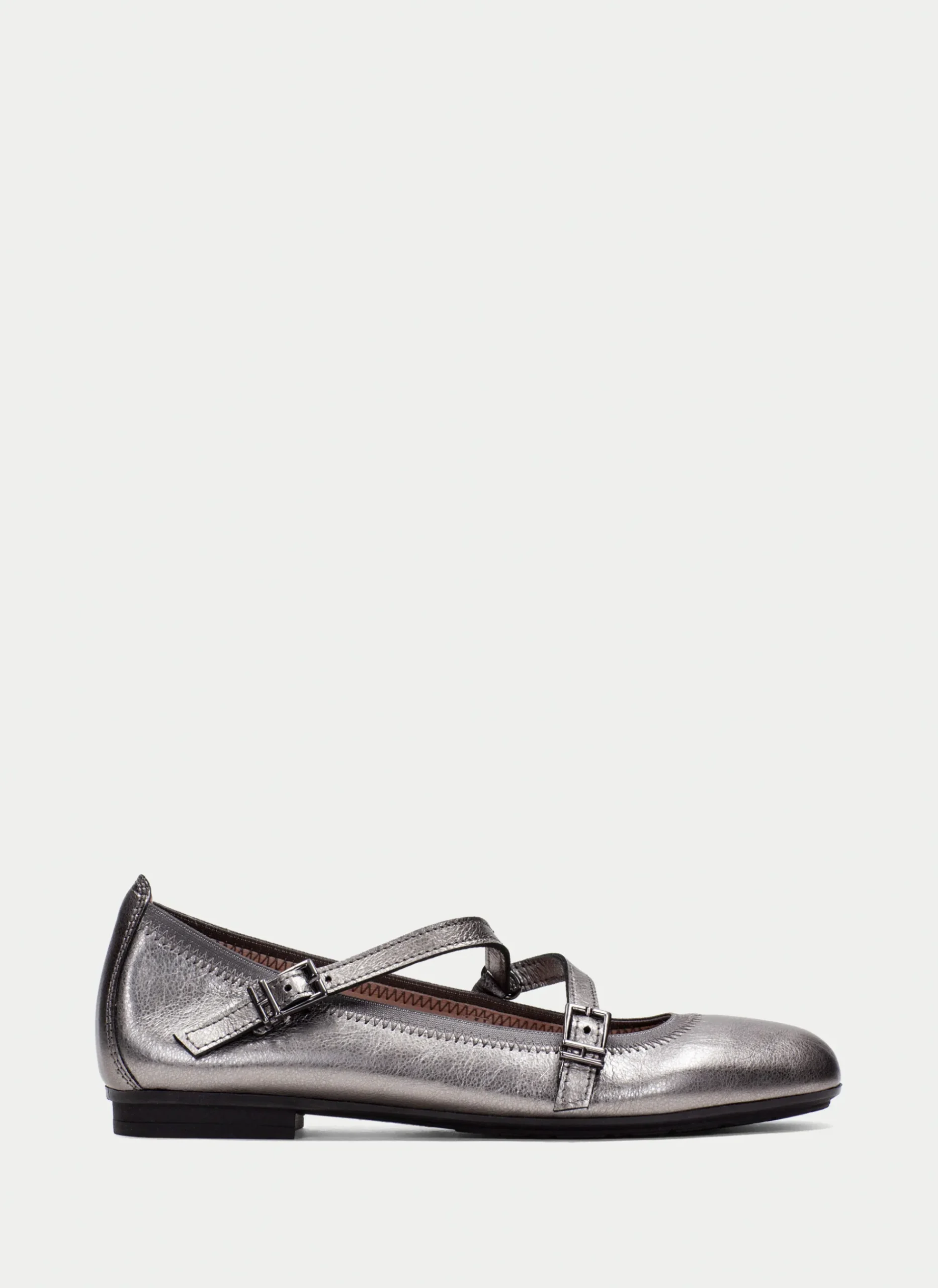 Sapatilha de couro com salto de 1,5 cm. Este modelo apresenta o detalhe de tiras cruzadas no peito do pé para um ajuste perfeito ao pé. Além disso, o sapato possui um triplo acolchoamento, chamado Triflow, que proporciona um efeito almofadado ao caminhar.