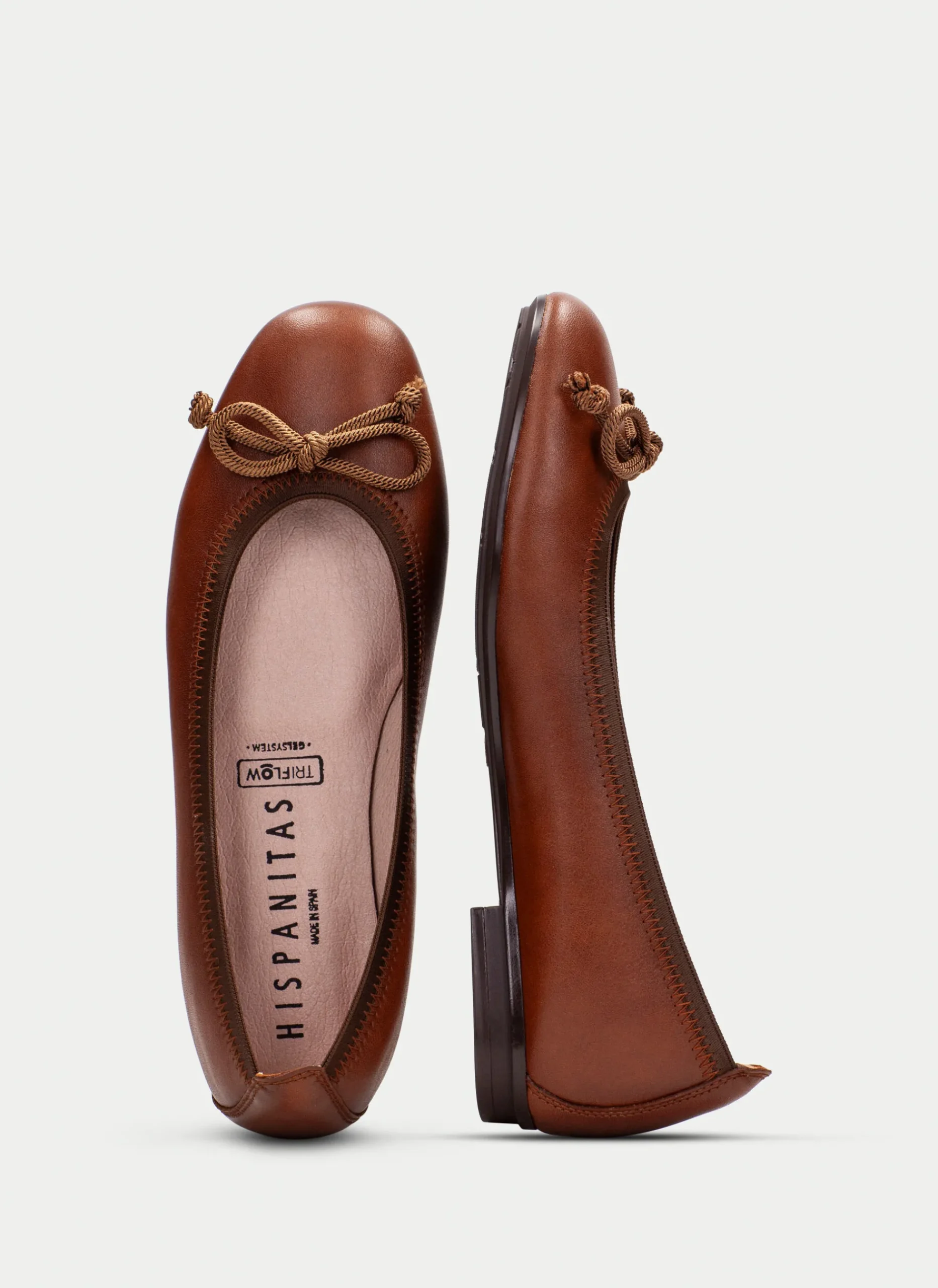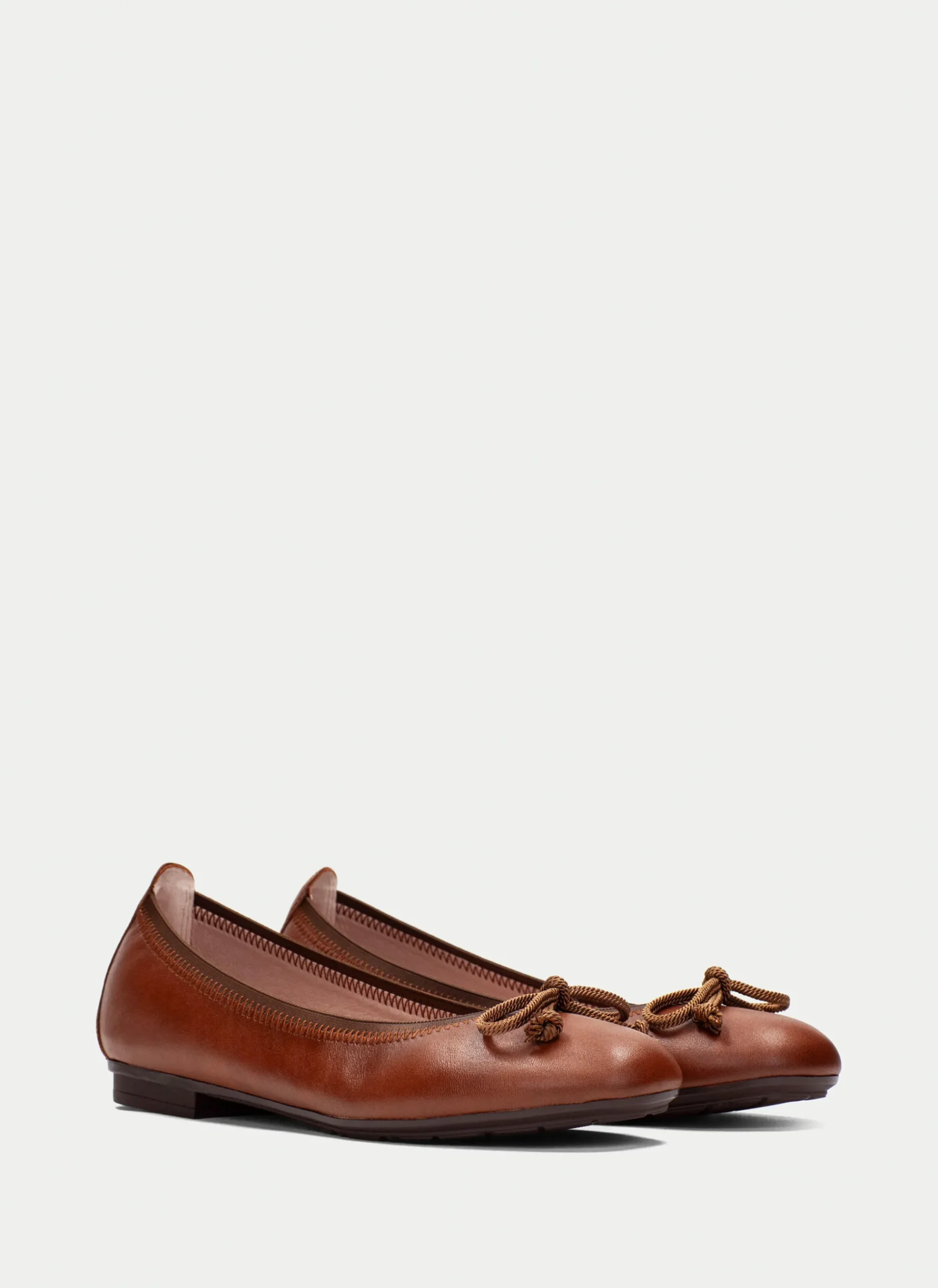 Bailarina de estilo clássico confeccionada em couro com detalhe de laço na ponta e acabamento elástico para um ajuste perfeito ao pé. Um modelo feito na Espanha que conta com nossa tecnologia Triflow de tripla almofada.