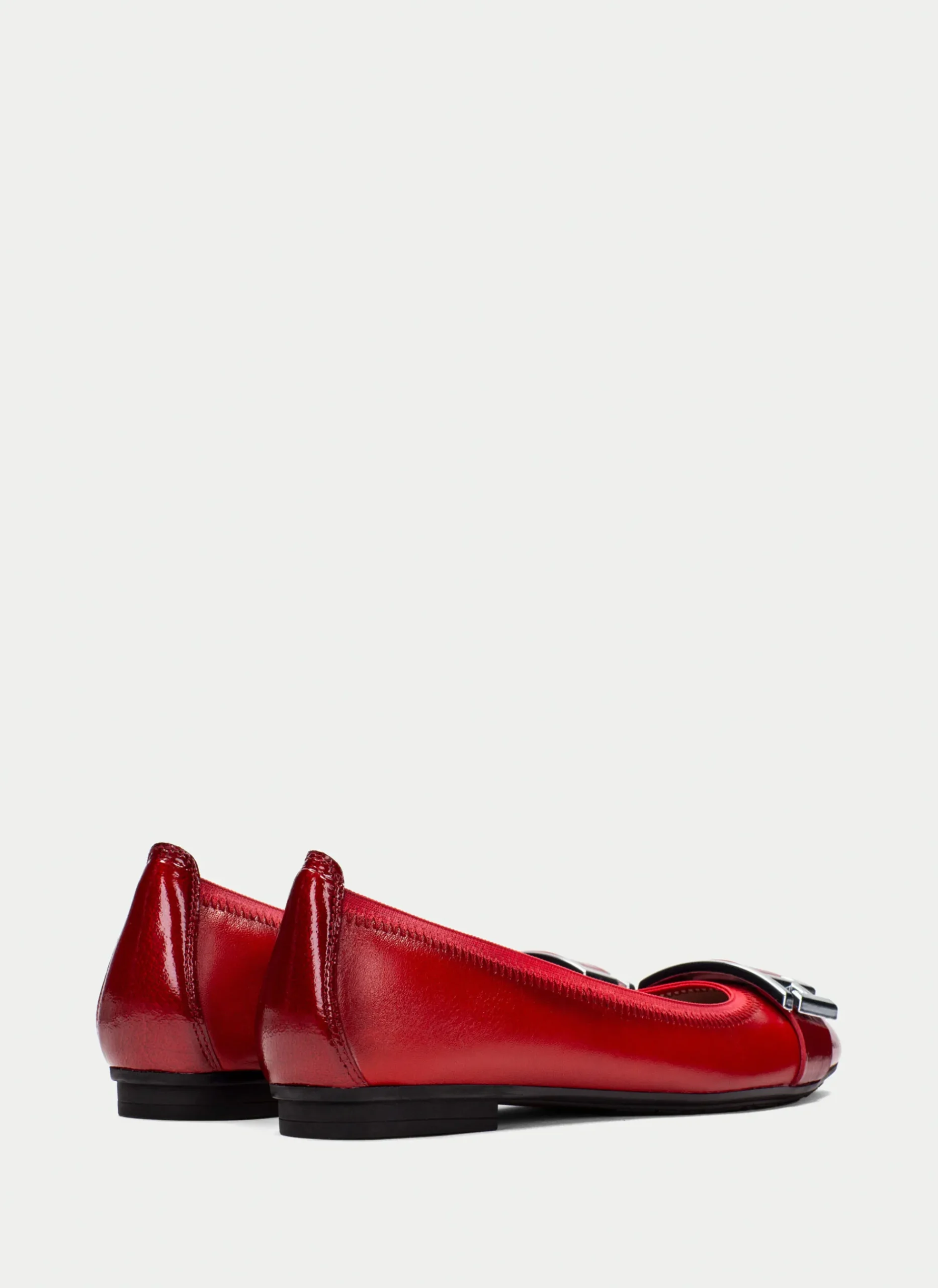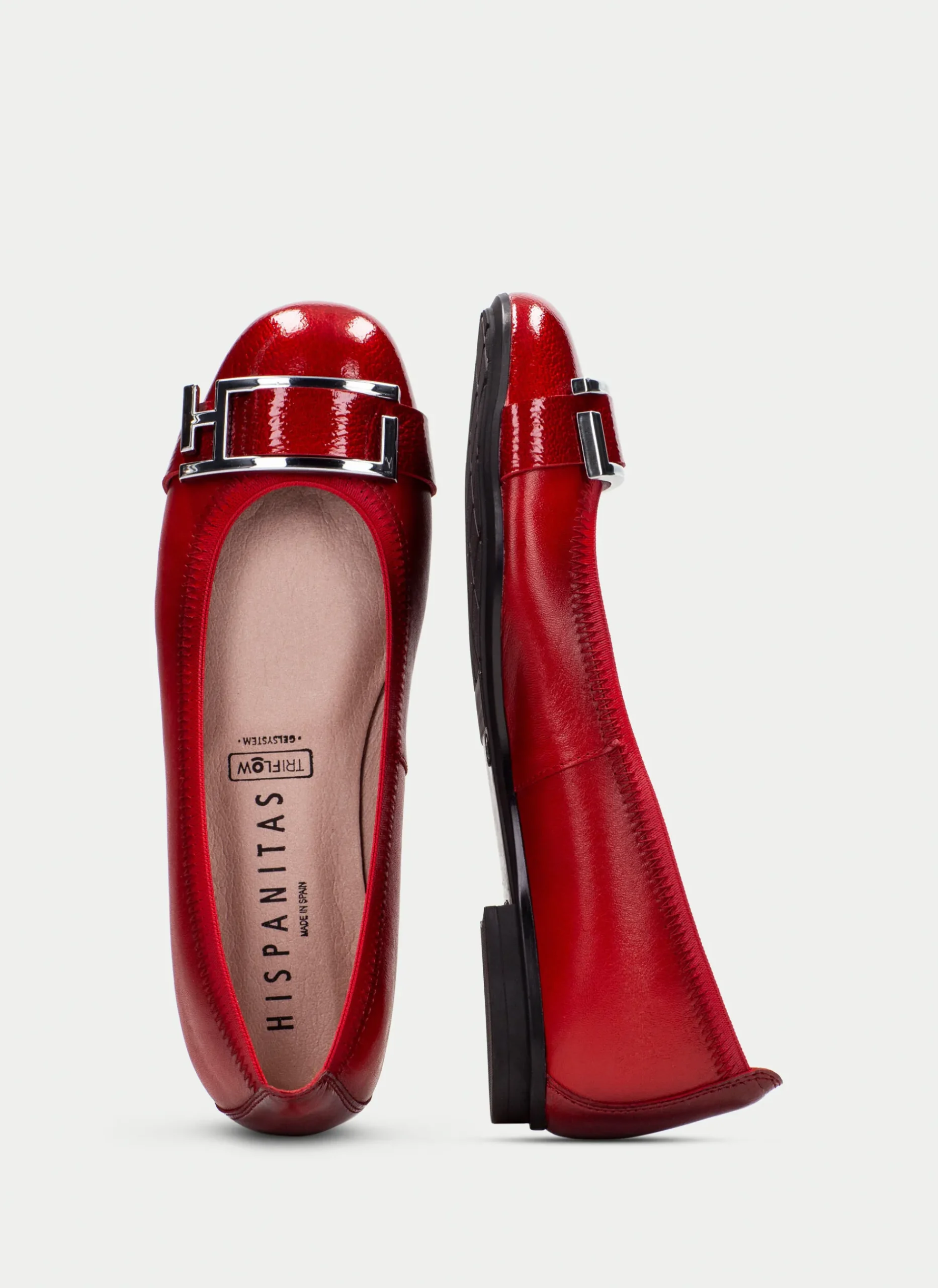 Sapatilha de couro com um adorno de logotipo duplo H na ponta e salto de 1,5 cm. Este modelo possui um triplo acolchoamento, chamado Triflow, que proporciona um efeito almofadado ao caminhar.
