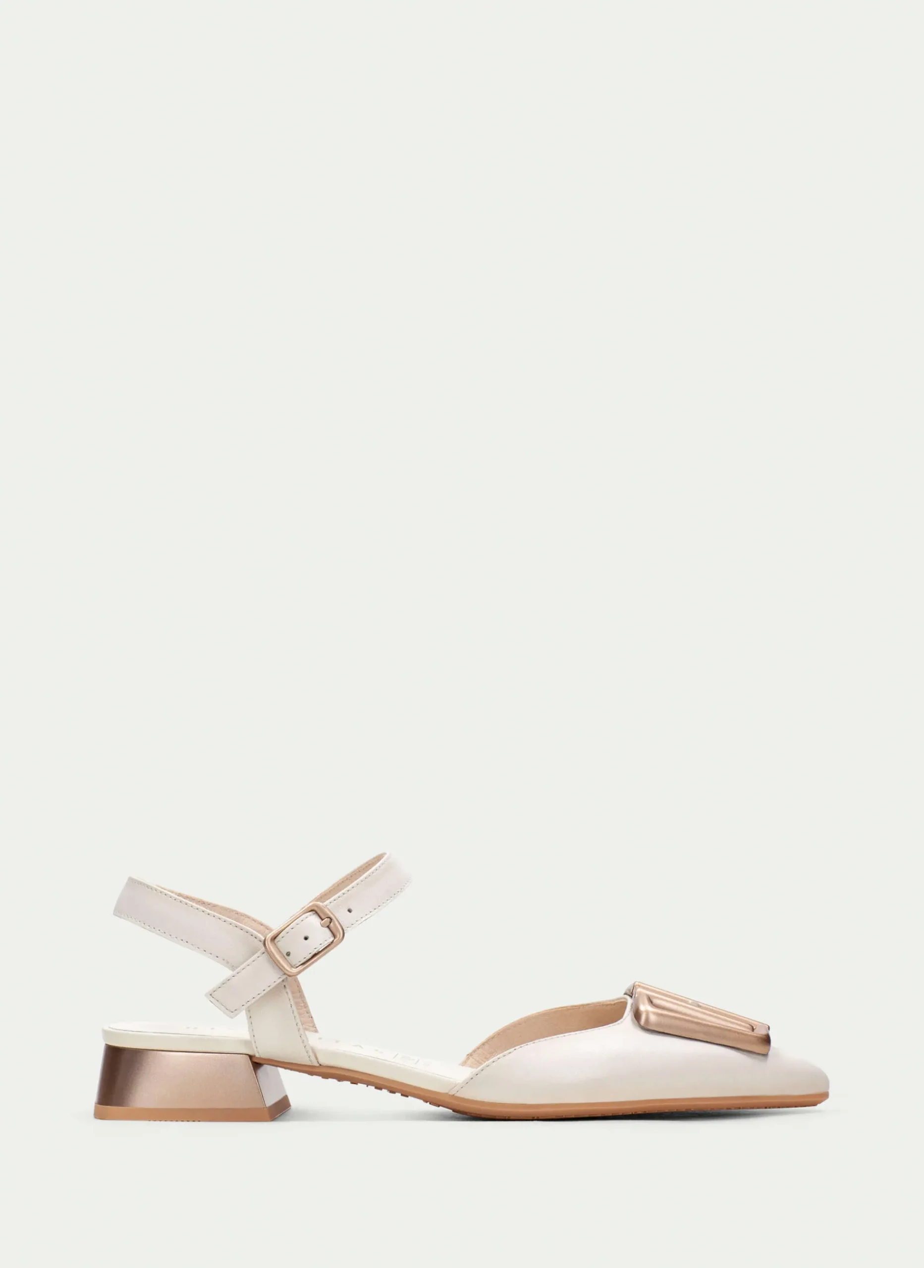 Sapatos de salto alto em pele com 2,5 cm de altura. Este modelo incorpora o pormenor especial do adorno maxi duplo H na biqueira. Tem um fecho de fivela na lateral. Este sapato possui a tecnologia Triflow, um amortecimento triplo que gera um efeito de amortecimento na pegada.
