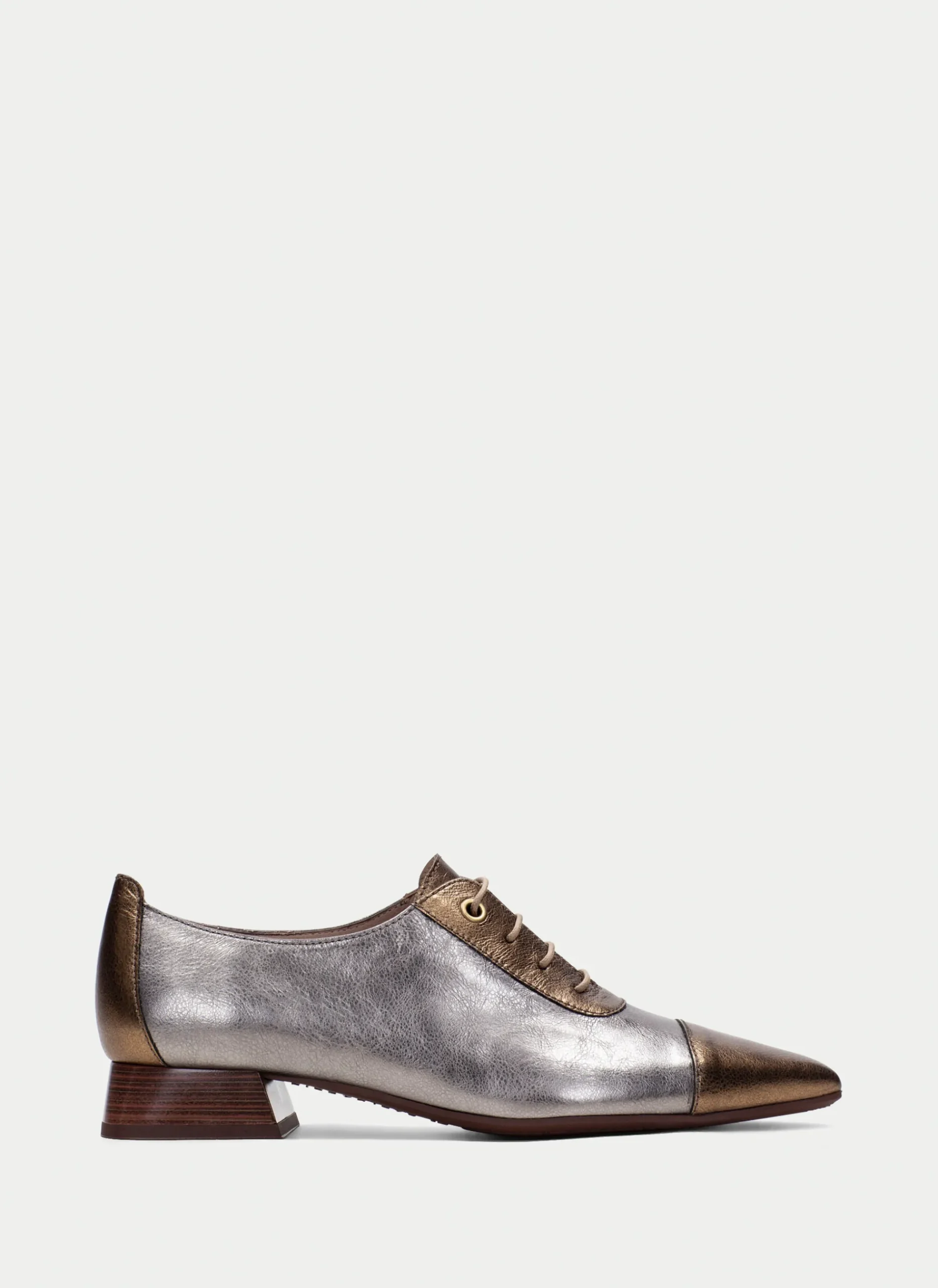 Sapato raso com bico fino estilo Oxford e salto baixo de 2,5 cm. Este modelo apresenta detalhes na ponta e fecho com atacadores, proporcionando um estilo elegante e moderno. Além disso, este sapato inclui a tecnologia Triflow que amortecendo cada passo e proporcionando flexibilidade e conforto graças ao seu triplo acolchoamento.